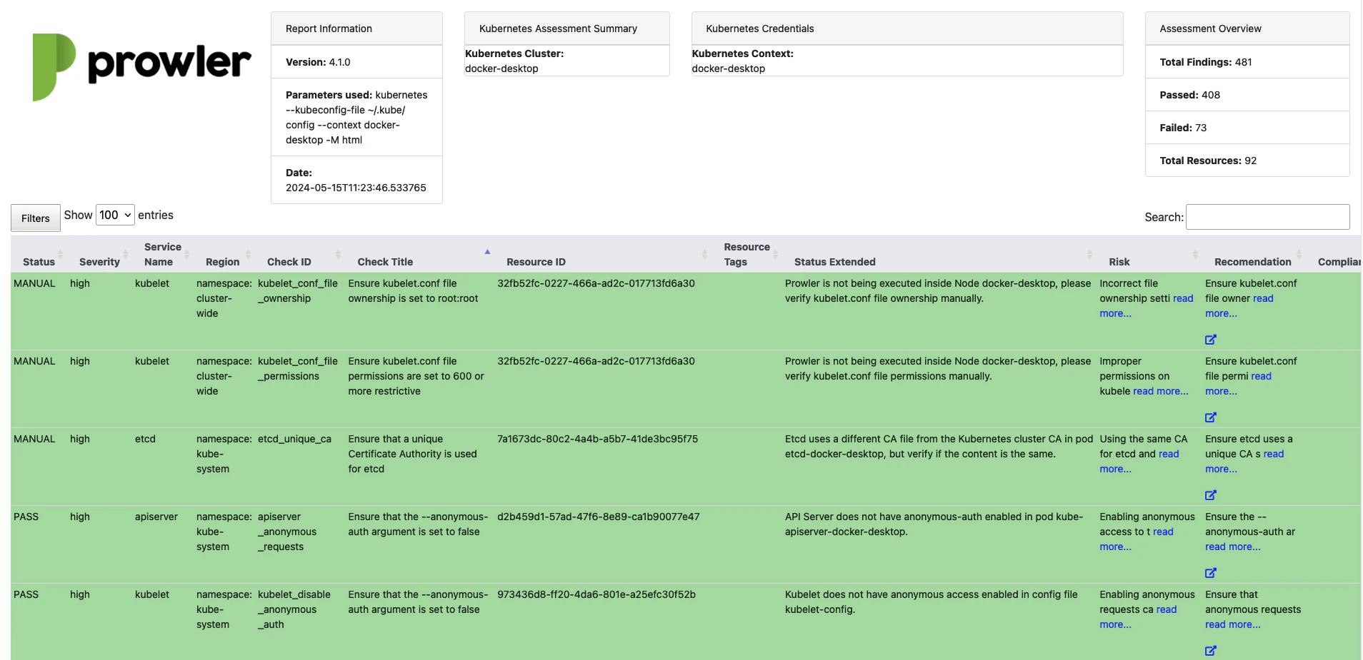 Hereunder is the structure for each of the supported report formats by Prowler: